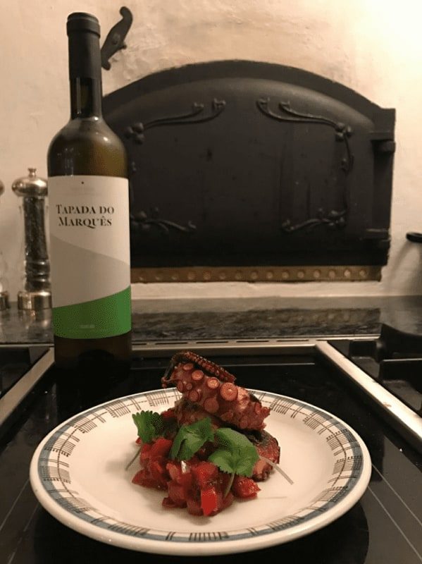 Helgrillad 8-armad bläckfisk med en het paprika-och myntaragu.